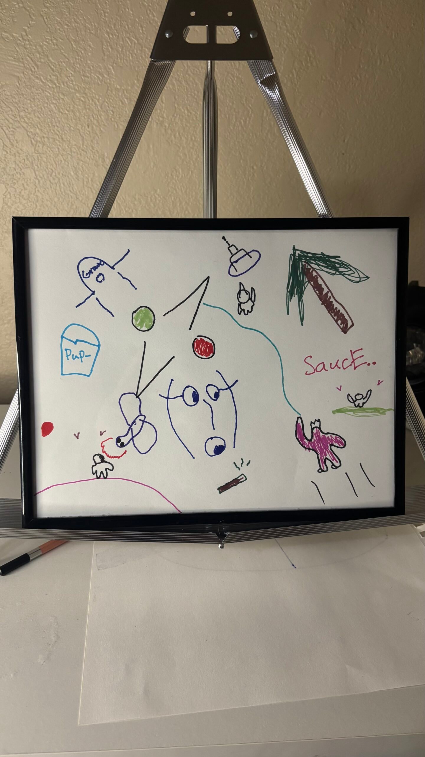 This piece explores overstimulation — the feeling of being surrounded by messages, symbols, and noise without clear meaning. It is not organized chaos; it is emotional clutter rendered honestly.